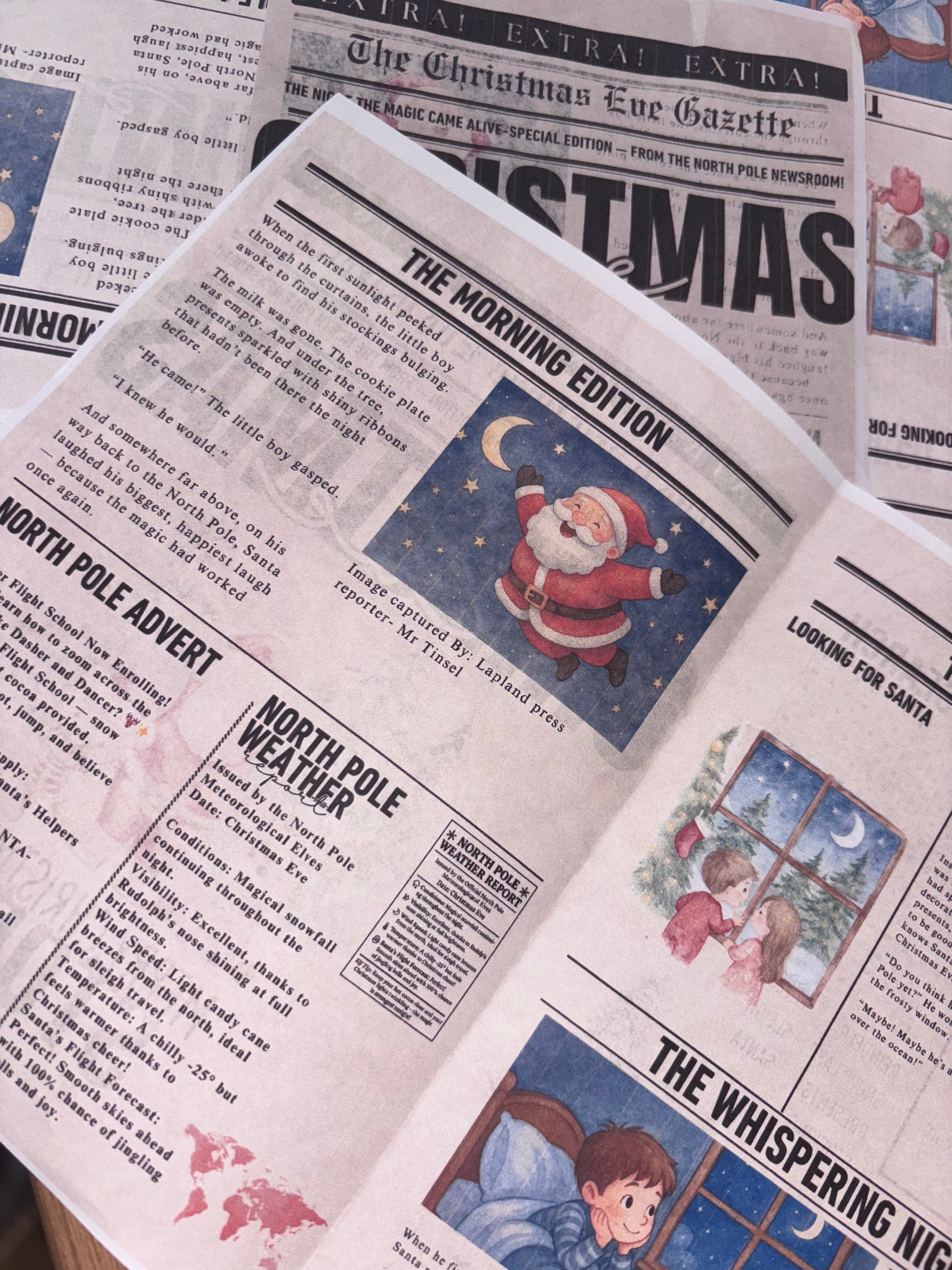 It’s not just a story — it’s a North Pole experience! Each page feels like a real newspaper straight from Santa’s workshop, filled with festive charm and magic that brings Christmas Eve to life.